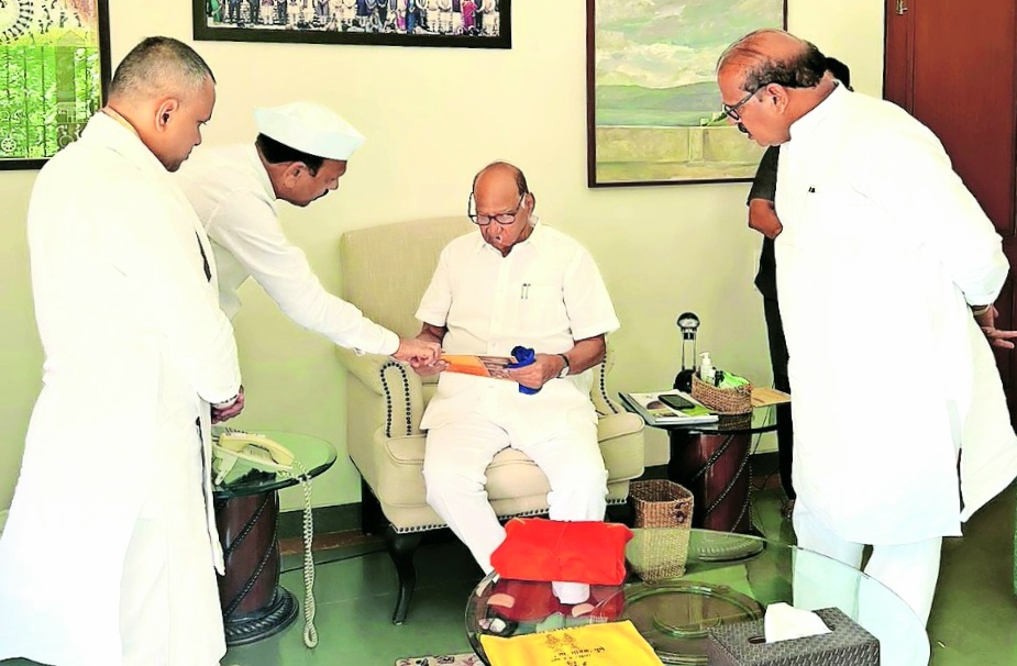 यावेळी बाळासाहेब काशिद यांनी संत तुकाराम महाराजांच्या जीवनावरील पुस्तके, श्री ज्ञानेश्वरी, पुष्पगुच्छ देऊन खासदार शरद पवार यांचा सन्मान केला. ह. भ. प. पंकज महाराज गावडे यावेळी उपस्थित होते. श्री क्षेत्र भंडारा डोंगर येथे सव्वाशे कोटींच्या मंदिर उभारणीचे काम सुरू आहे. या मंदिराच्या कामाची पार्श्वभूमी माजी आमदार विलास लांडे यांनी खासदार पवार यांना सांगितली.